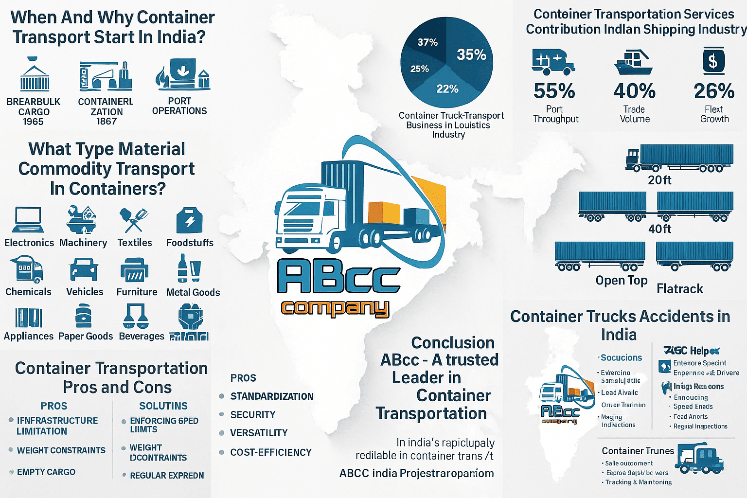 In India’s rapidly expanding logistics and shipping ecosystem, ABCC India Project Cargo Corporation has earned a famous and reliable name in the container transportation industry. With decades of experience, a modern fleet of 20ft, 32ft, 40ft, 45ft, reefer, open-top, flat rack, and high-cube container trucks, and a strong presence at major ports like JNPT, Mundra, Vizag, Chennai, and Tuticorin, ABCC has become the preferred choice for industries ranging from FMCG, pharmaceuticals, and agro-processing to steel, automotive, e-commerce, and ODC cargo movement.