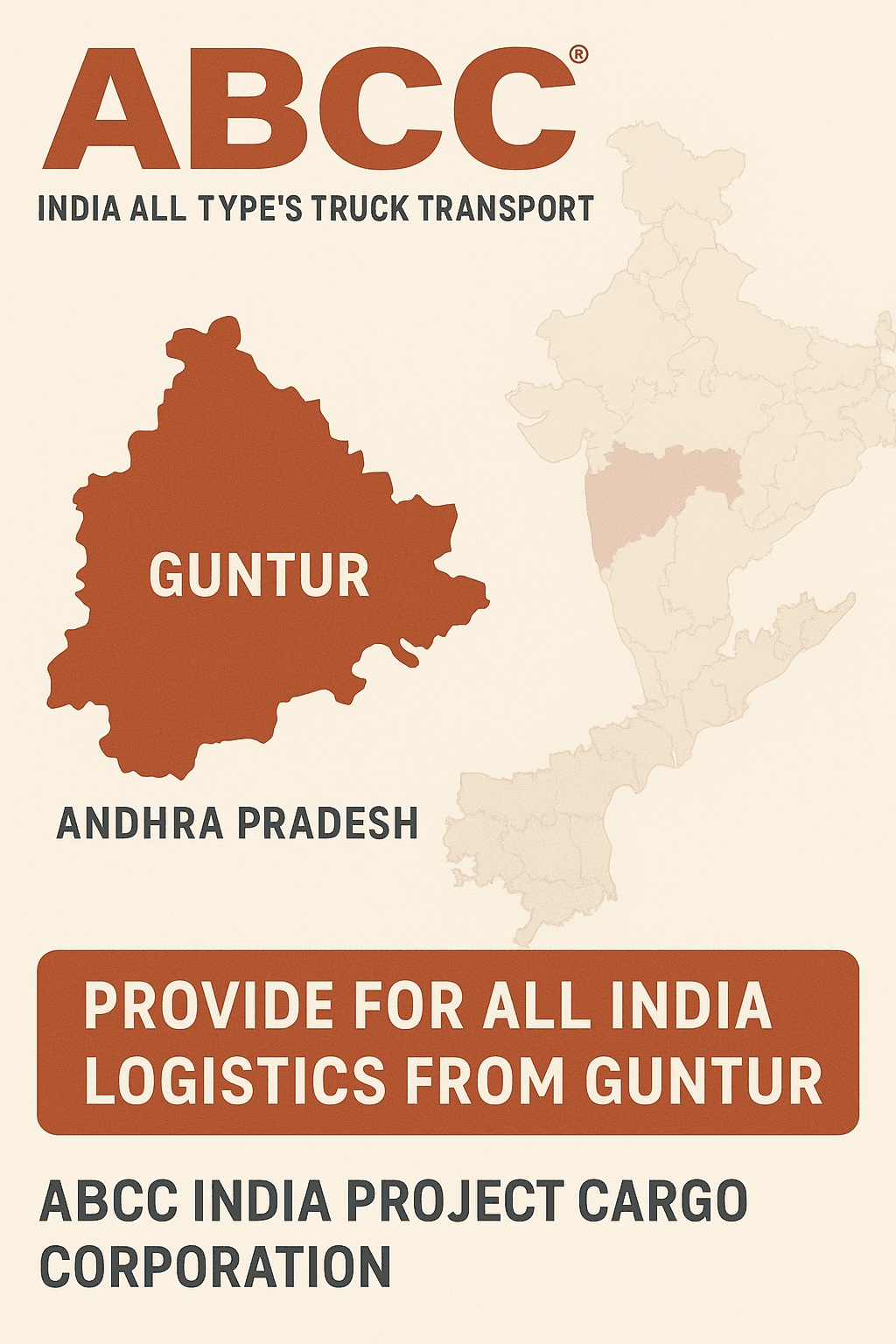As Guntur continues to industrialize and integrate into global supply chains, ABCC India Project Cargo Corporation remains the most reliable name for goods transportation and logistics solutions . Whether it is small luggage transport, industrial cargo, or massive ODC projects , ABCC India ensures that every consignment is delivered with efficiency, safety, and trust .