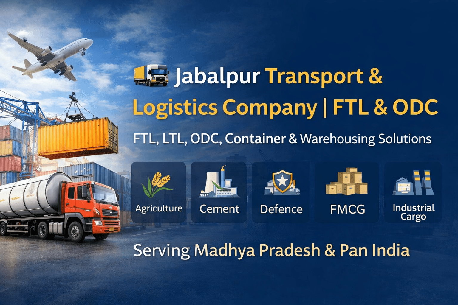 The transport industry in Jabalpur is not limited to simple truck movement. It includes Full Truck Load (FTL), Part Load (LTL), Taurus lorry transport, containerized freight, heavy trailer & ODC (Over Dimensional Cargo), tanker movement, cement bulkers, warehousing, and material handling services. With growing industrialization and better road connectivity, the district has evolved into a structured logistics hub rather than just a regional trucking point.