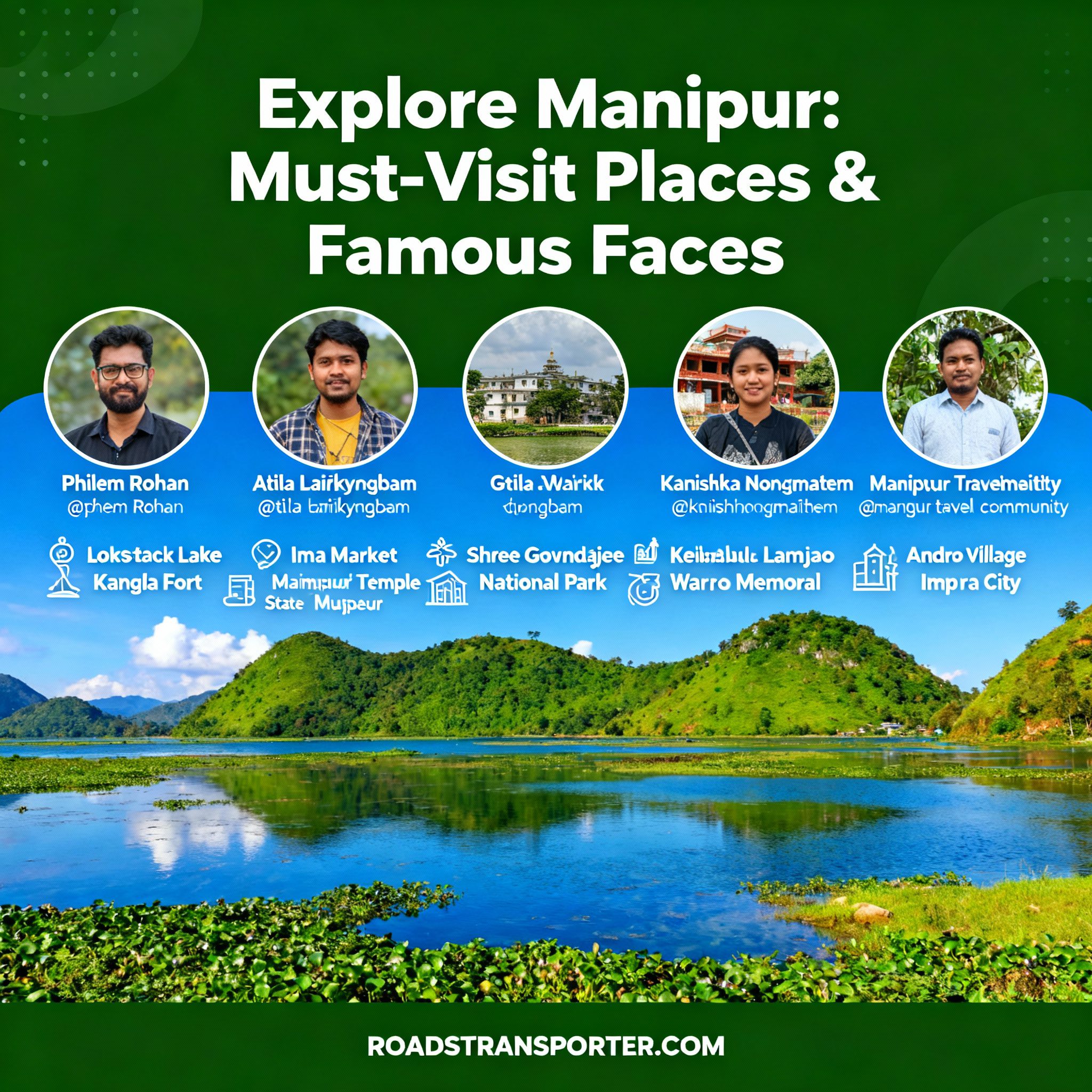 | Sendra Island | Panoramic view of Loktak Lake | Oct–Mar | Half Day | Spouse/Friends | ₹600–₹900 |