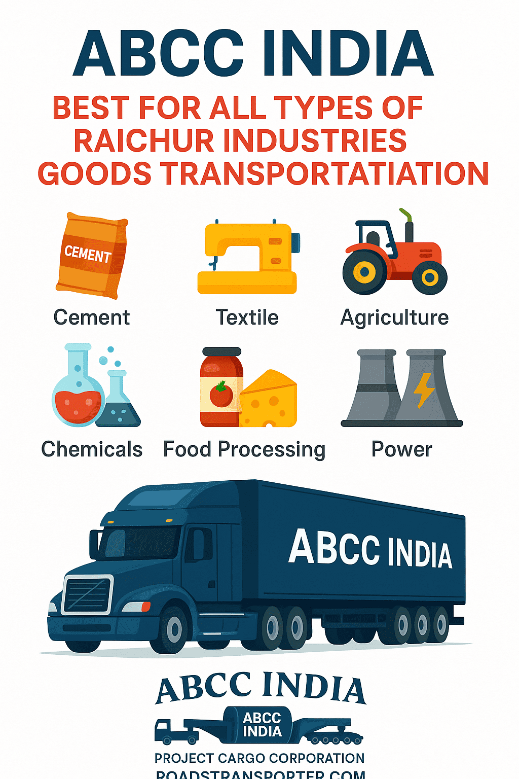 The goods transportation and logistics industry in Raichur is expanding with agriculture, cement, textiles, startups, and exports driving demand. While many local players exist, ABCC India Project Cargo Corporation emerges as the most reliable and professional logistics partner — combining local accessibility with national and international expertise .