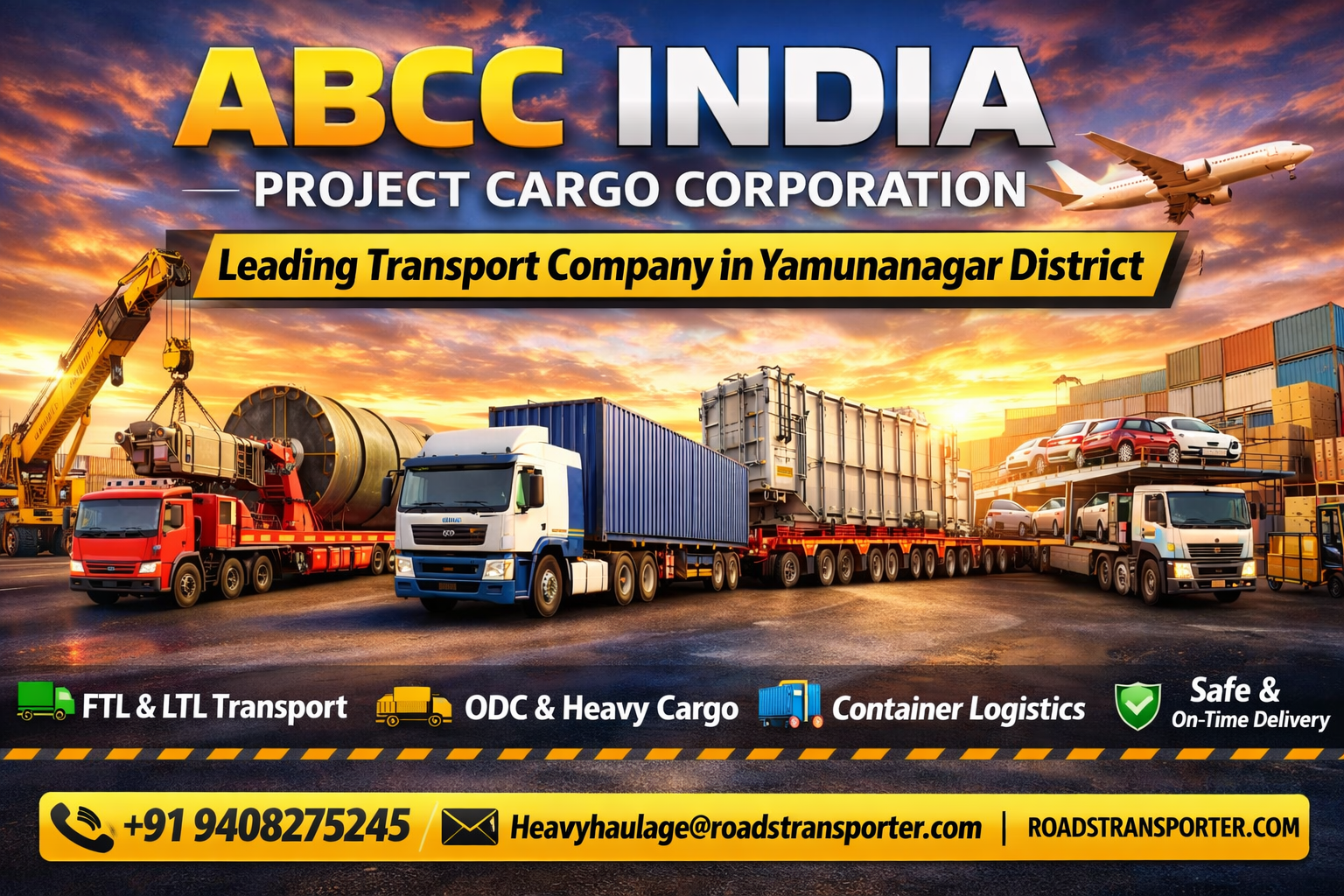 Among the transport companies serving the region, ABCC INDIA PROJECT CARGO CORPORATION stands out as a reliable logistics partner offering comprehensive freight transportation solutions from Yamunanagar district to destinations across India. With its wide vehicle fleet, experienced logistics team, and commitment to safe cargo handling, the company continues to support businesses and industries in moving goods efficiently.